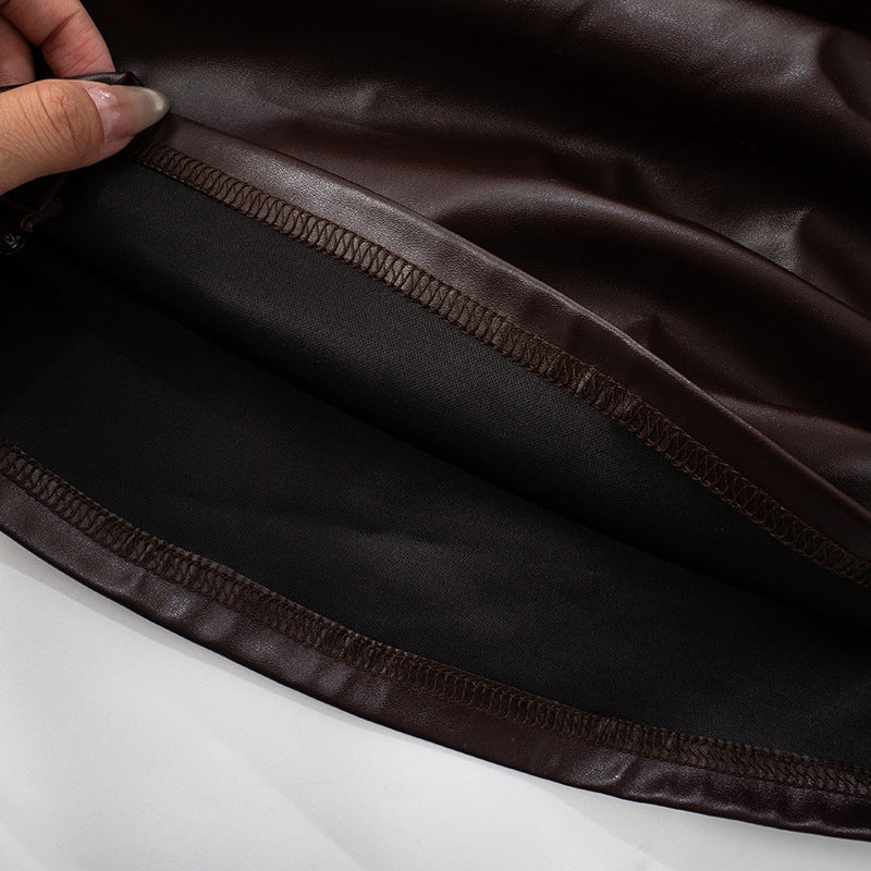 Elevate your edgy style with this PU leather strapless crop top—a standout piece for trendsetters, which has black, brown, burgundy and beige available.