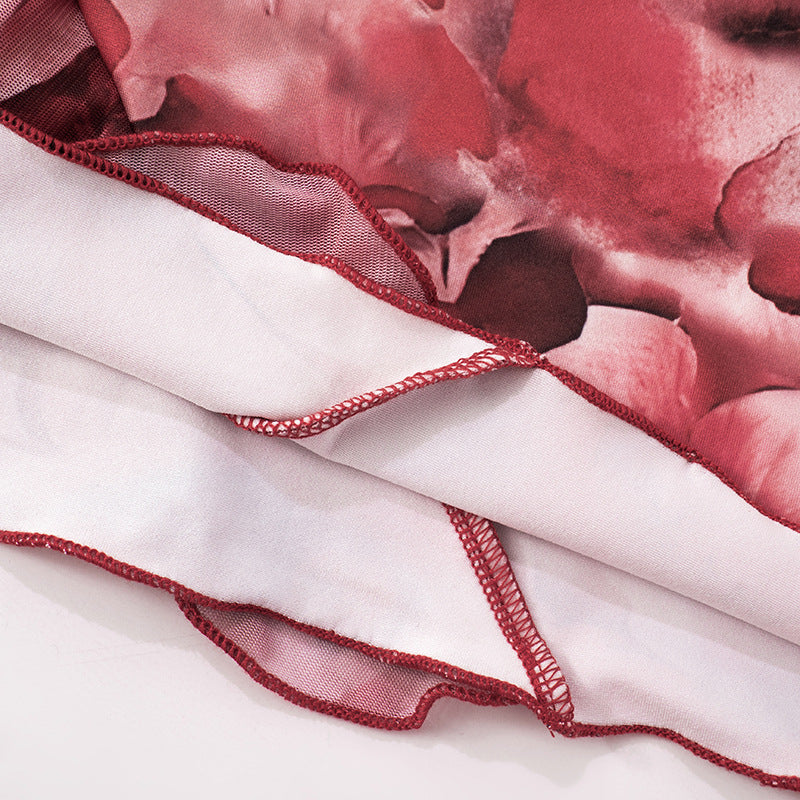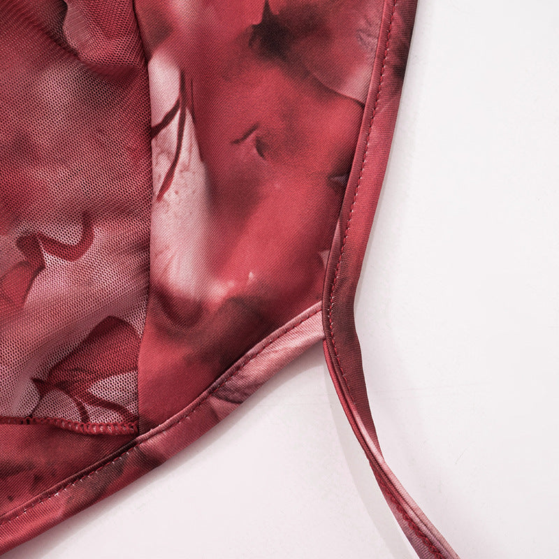 This burgundy halter neck sleeveless dress exudes romantic elegance. Crafted from lightweight, sheer chiffon, it features tiered ruffle detailing that adds dynamic texture and volume. The sleeveless design and halter neckline offer a balance of sophistication and modern style. Perfect for occasions like parties or evening events, this piece blends vintage flair with fashion sensibilities, making it a standout choice for those seeking both style and femininity.