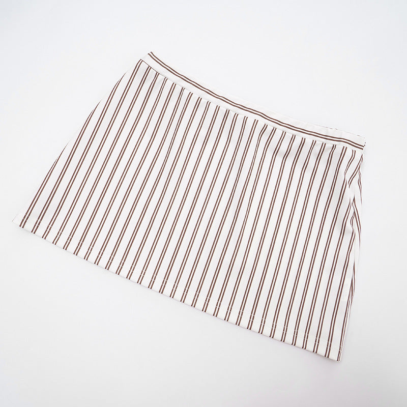 MB10127 Women's Stripe Button Shirt & Bodycon Skirt Two Piece Set