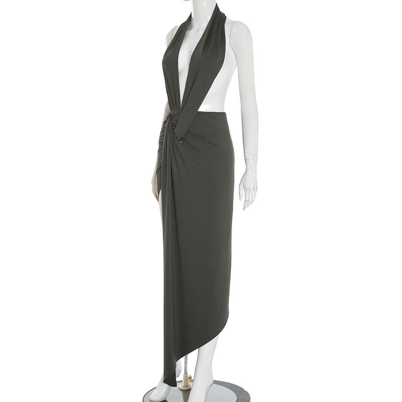 MB10133 Women's Charcoal Halter Twist Cutout Ruched Dress