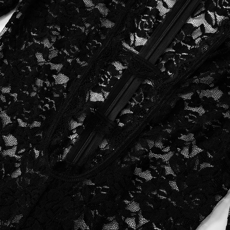 Elevate your style with this Women's Sexy Black Lace Jumpsuit, featuring a deep V - neck, long sleeves, and a cut - out waist design.