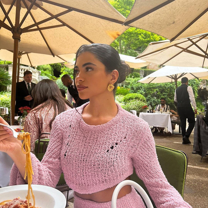 MB1080 Knit Crop Top & Fishtail Skirt Two-Piece Set for Women