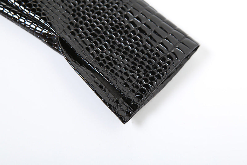 MB1108 Crocodile Print PU Leather Cropped Jacket for Women