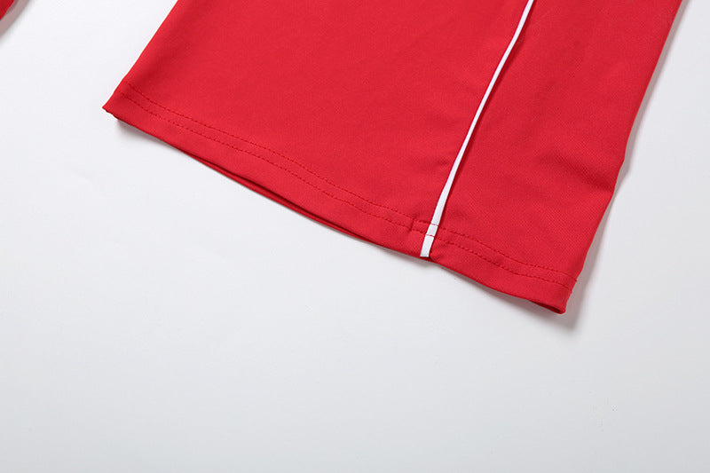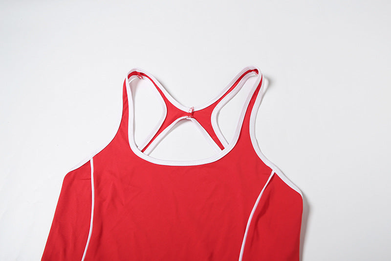 The jumpsuits are solid color with white piping, featuring a backless design and flared legs. Both jumpsuits have a sleek, form - fitting silhouette that highlights the figure, giving off a stylish and trendy vibe, perfect for a fashionable look.