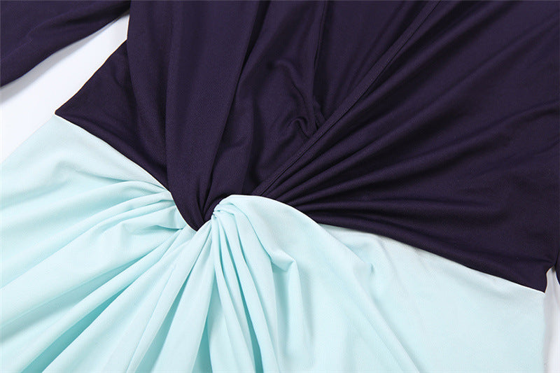 This color block maxi dress blends rich burgundy and soft mint green for a striking, modern look, featuring a deep V-neck, long sleeves, and ruched detailing. The lightweight, flowy fabric ensures comfort while the high slit adds a touch of elegance. For wedding guest events or formal dinner parties, pair it with metallic strappy heels and a matching burgundy clutch to tie the color palette together; for evening cocktail gatherings or upscale gallery openings, layer a cropped tailored blazer over the top and add minimal gold jewelry to keep the focus on the dress’s bold design.
