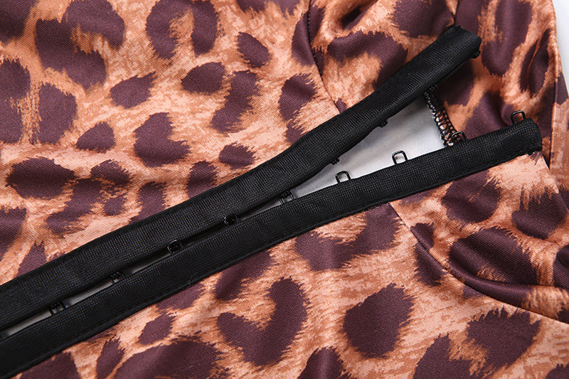 Stand out in this leopard print long sleeve high neck crop top and flared pants 2 piece set, a bold and sexy bodycon matching outfits designed for women who love wild patterns. The high neck crop top with front zip detail offers a structured, figure - hugging fit, while the flared pants balance the fitted top with a fluid, leg - elongating silhouette, making this 2 piece set perfect for night out club wear or trendy party ensembles.