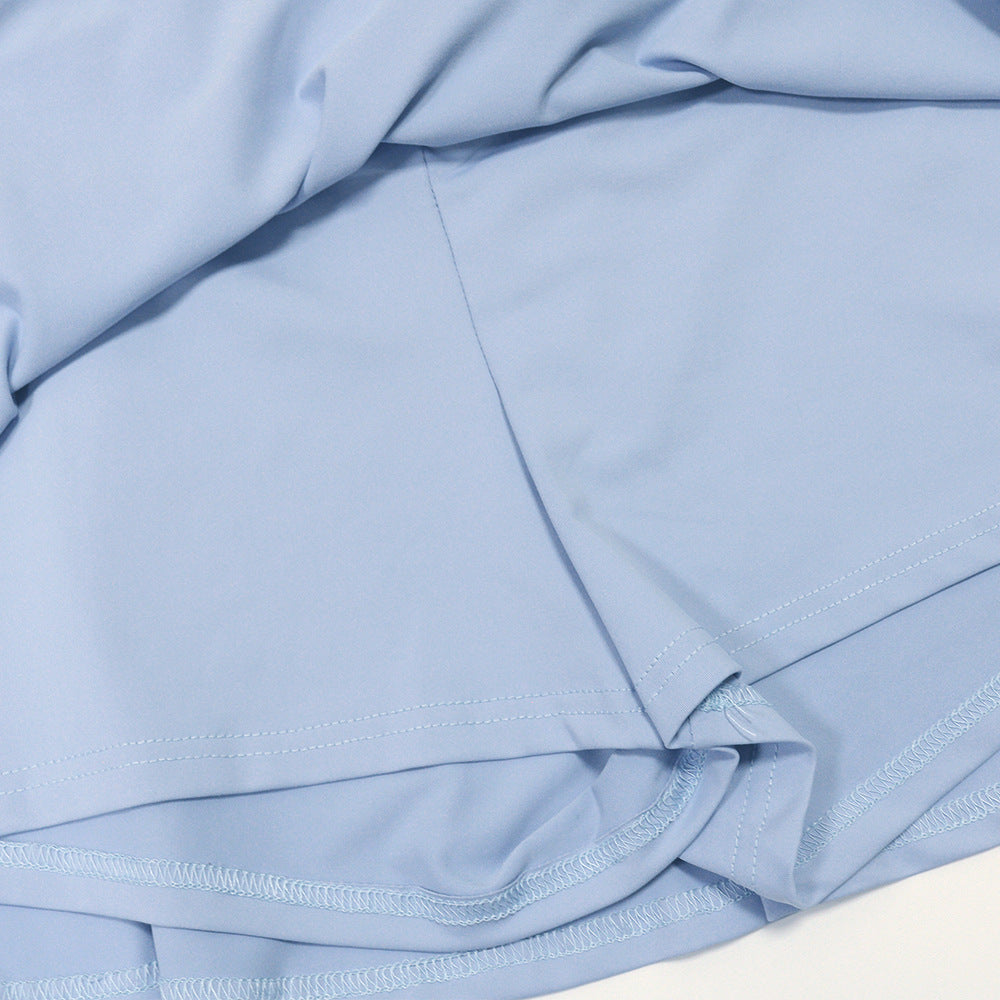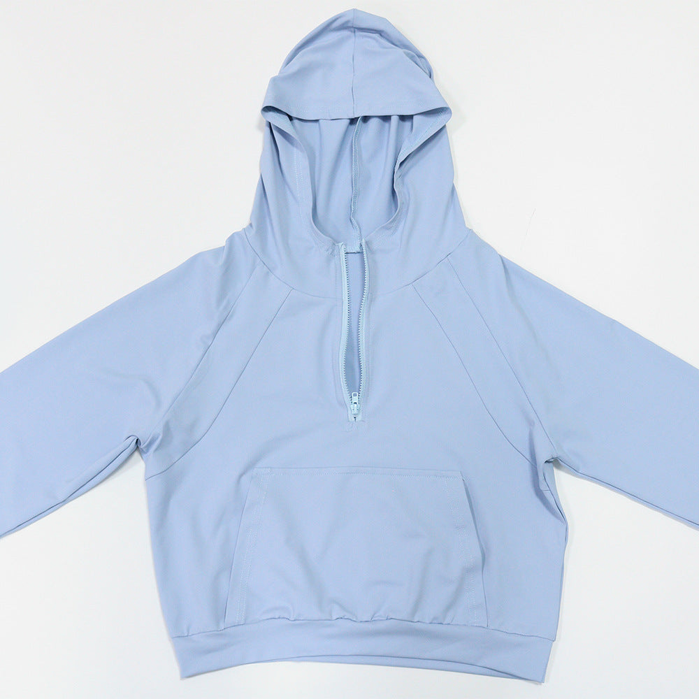 This set features a half-zip hooded crop top paired with a stylish skort adorned with a crisscross waist detail. Ideal for daily wear, street-style ensembles, or relaxed social occasions.