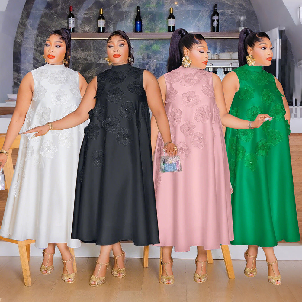 This high neck loose fit party dress features a relaxed, loose fit, a high neck design and 3D floral lace embellishments. Dress it up with metallic heels and a statement clutch, you are ready for cocktail parties, brunch dates, or evening events.