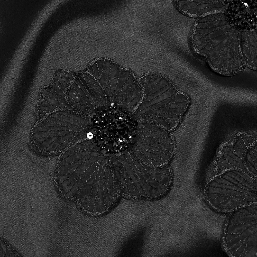 MB1215 Satin Sleeveless Midi Dress with 3D Floral Embellishments