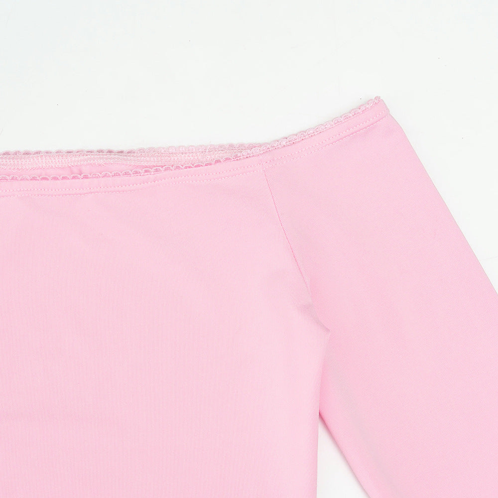 MB1322 Pink Long Sleeve Crop Top & Mermaid Maxi Skirt Set