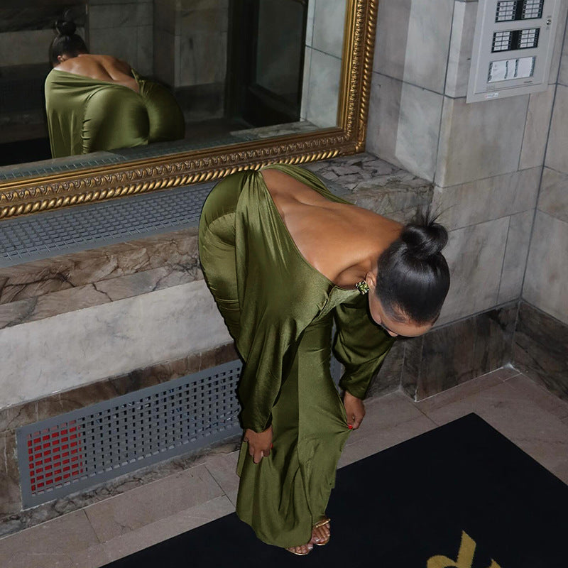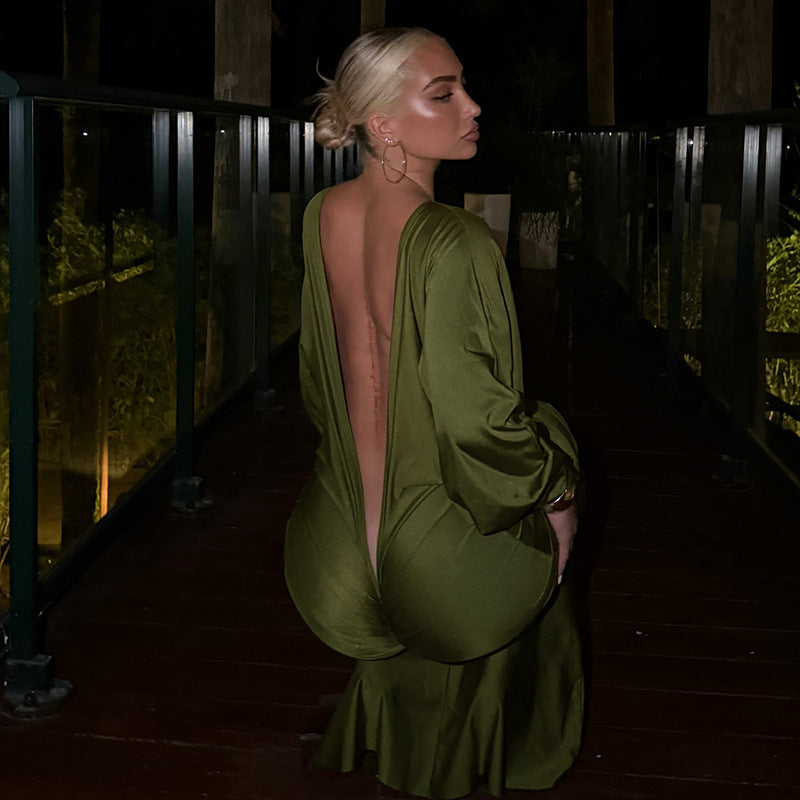 MB1405 Long Sleeve Backless Maxi Dress for Women