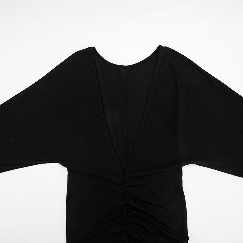 This women’s black maxi dress has deep V backless design — paired with flowy long sleeves and a figure-hugging mermaid hem that’s perfect for evening parties, formal events, or romantic date nights.