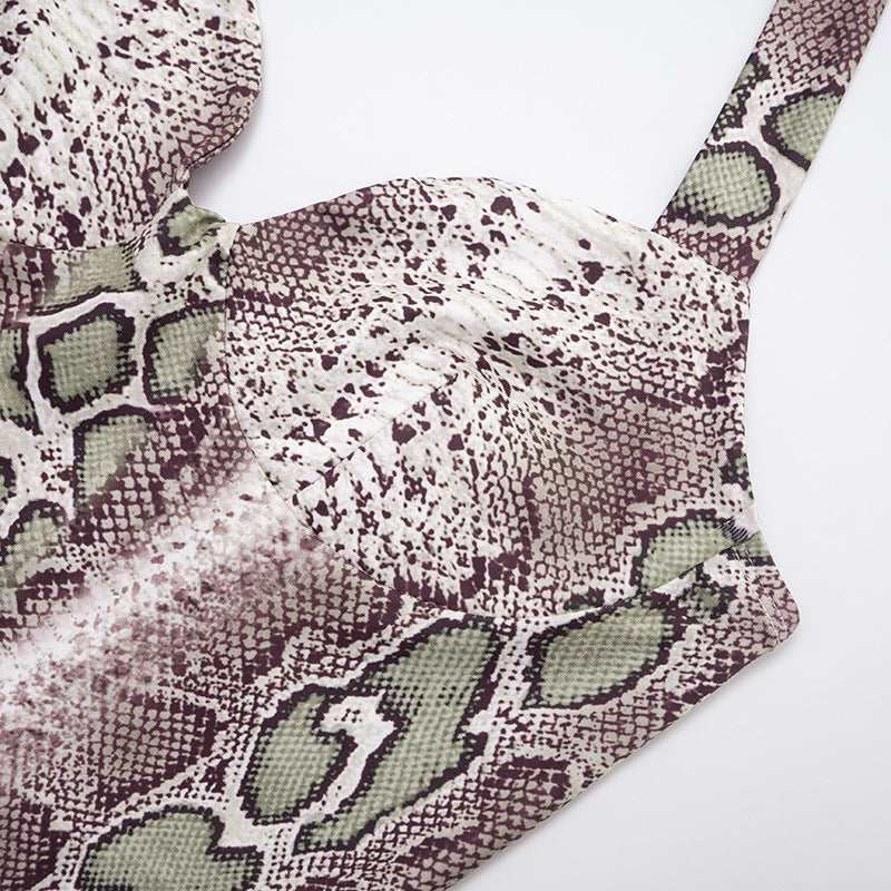 MB1407 Snake Print Halter Capri Jumpsuit for Women