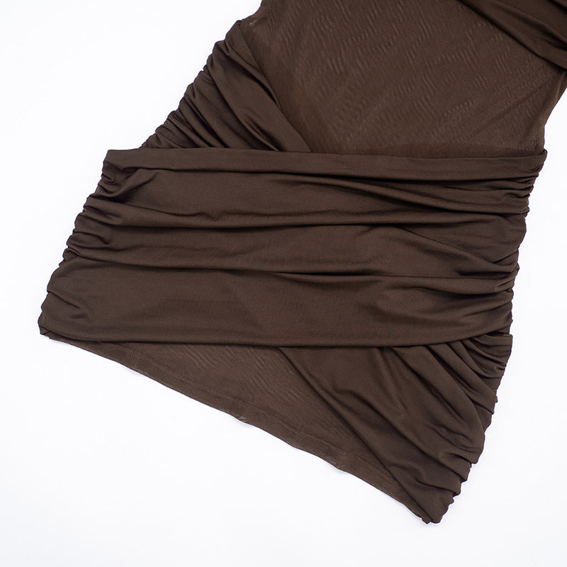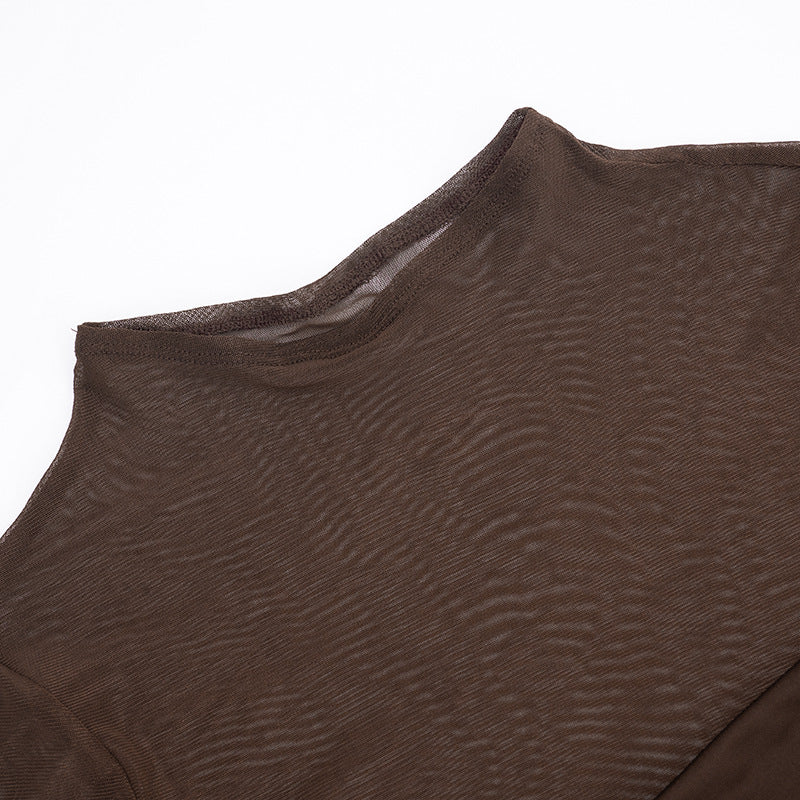 MB1409 Mock Neck Sheer Mesh Ruched Mini Dress for Women