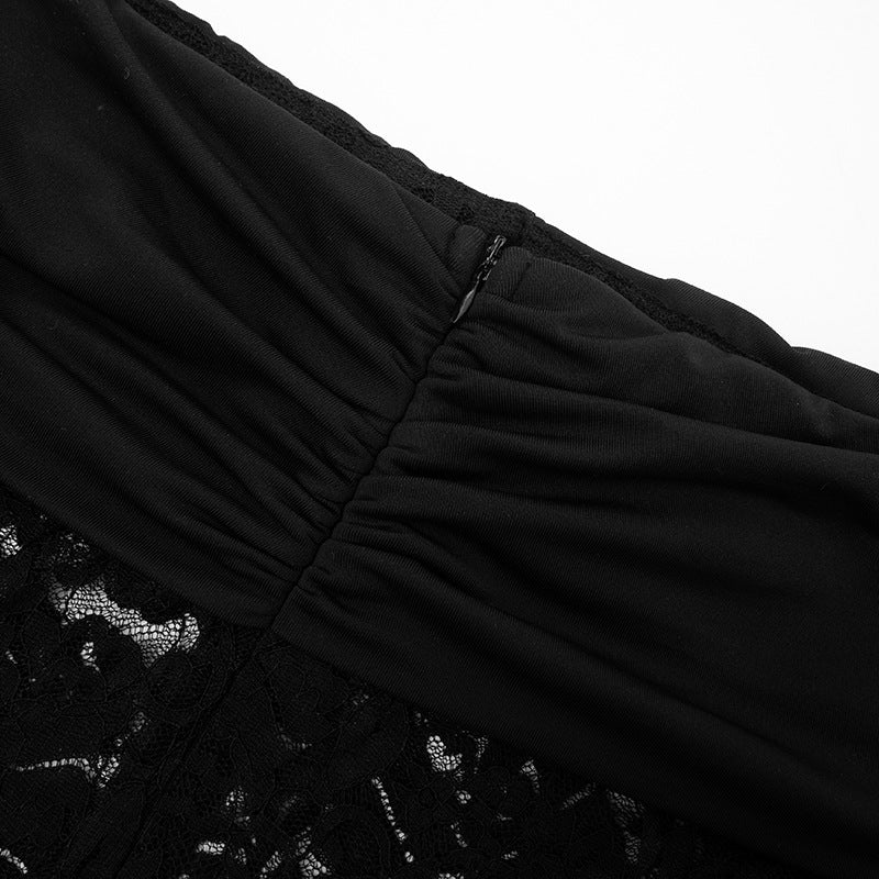 This women’s jumpsuit features an off-the-shoulder ruched neckline, sheer lace long sleeves, flared legs, and a waist sash detail. The lace sleeves add a delicate, polished touch, while the flared leg silhouette visually lengthens your legs. This women's one-piece is perfect for night outs, parties, or formal date occasions.