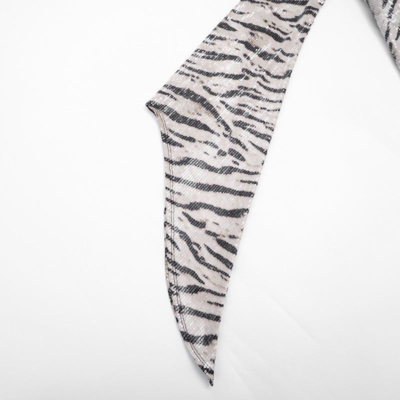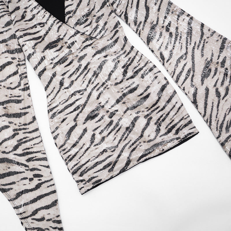 MB1427 Snake Print Sequin Mini Dress with Flared Bell Sleeves