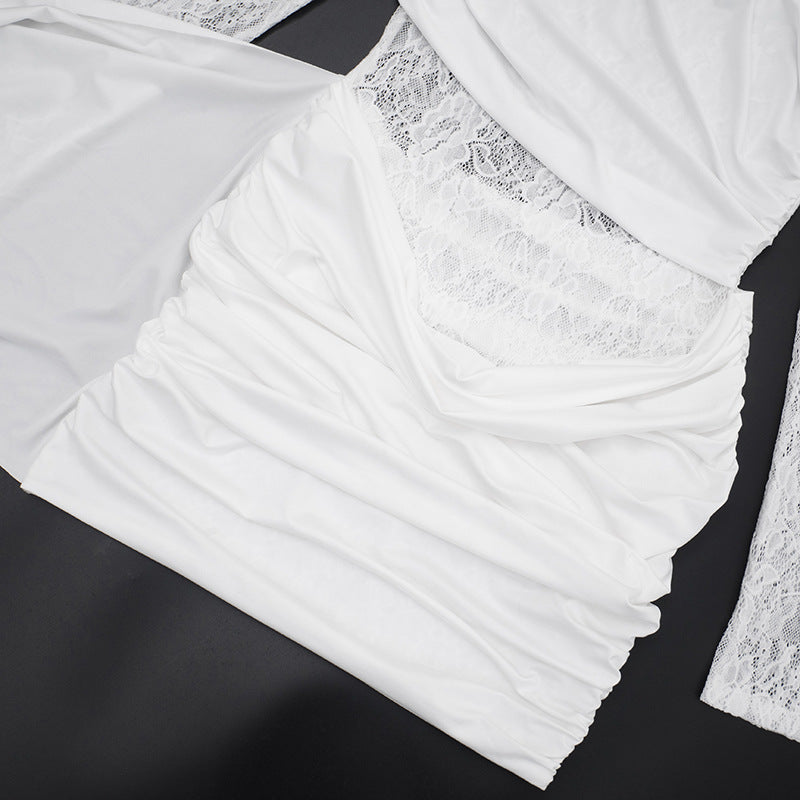 MB1440 Lace Panel Ruched Mini Dress with Side Tie