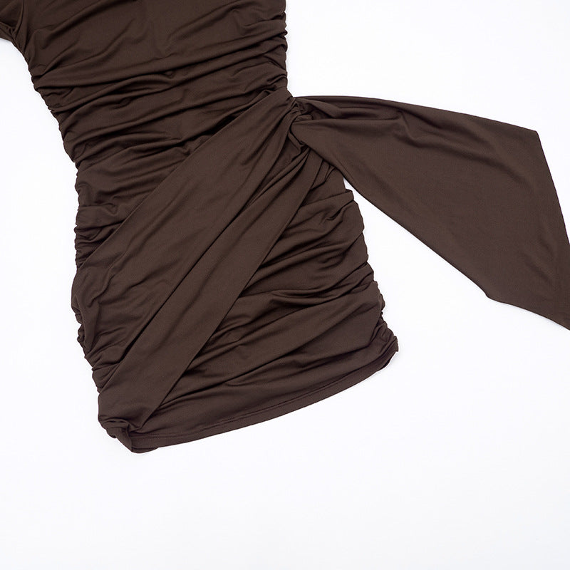 MB1442 Women's Ruched Draped Mini Dress with Long Sleeves