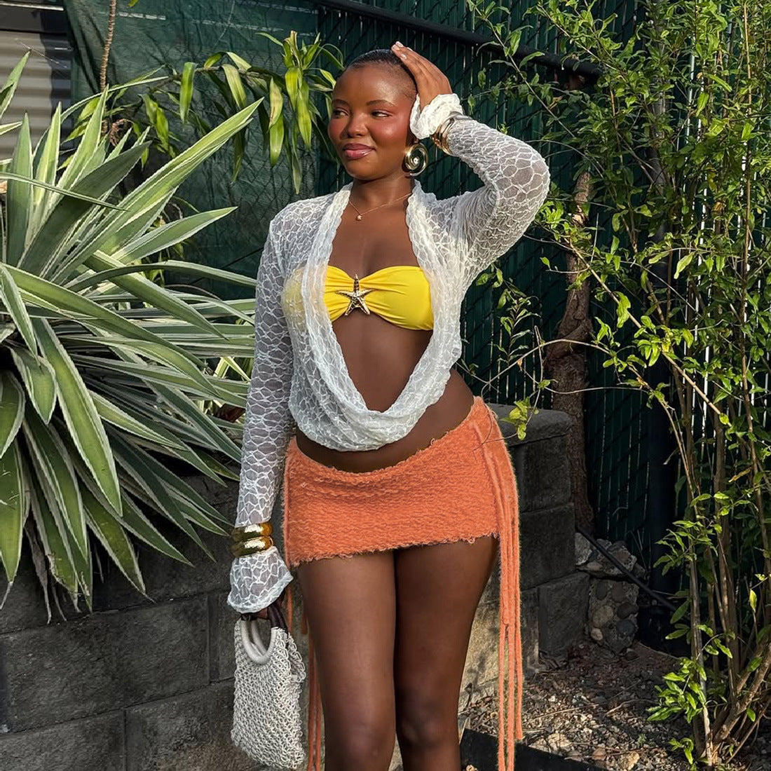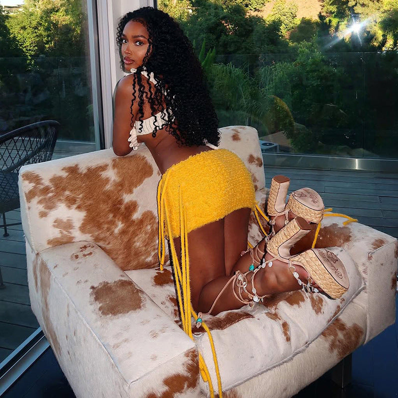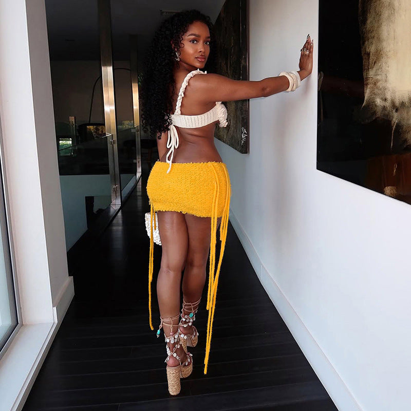MB1504 Knit Fringe Bodycon Mini Skirt for Party