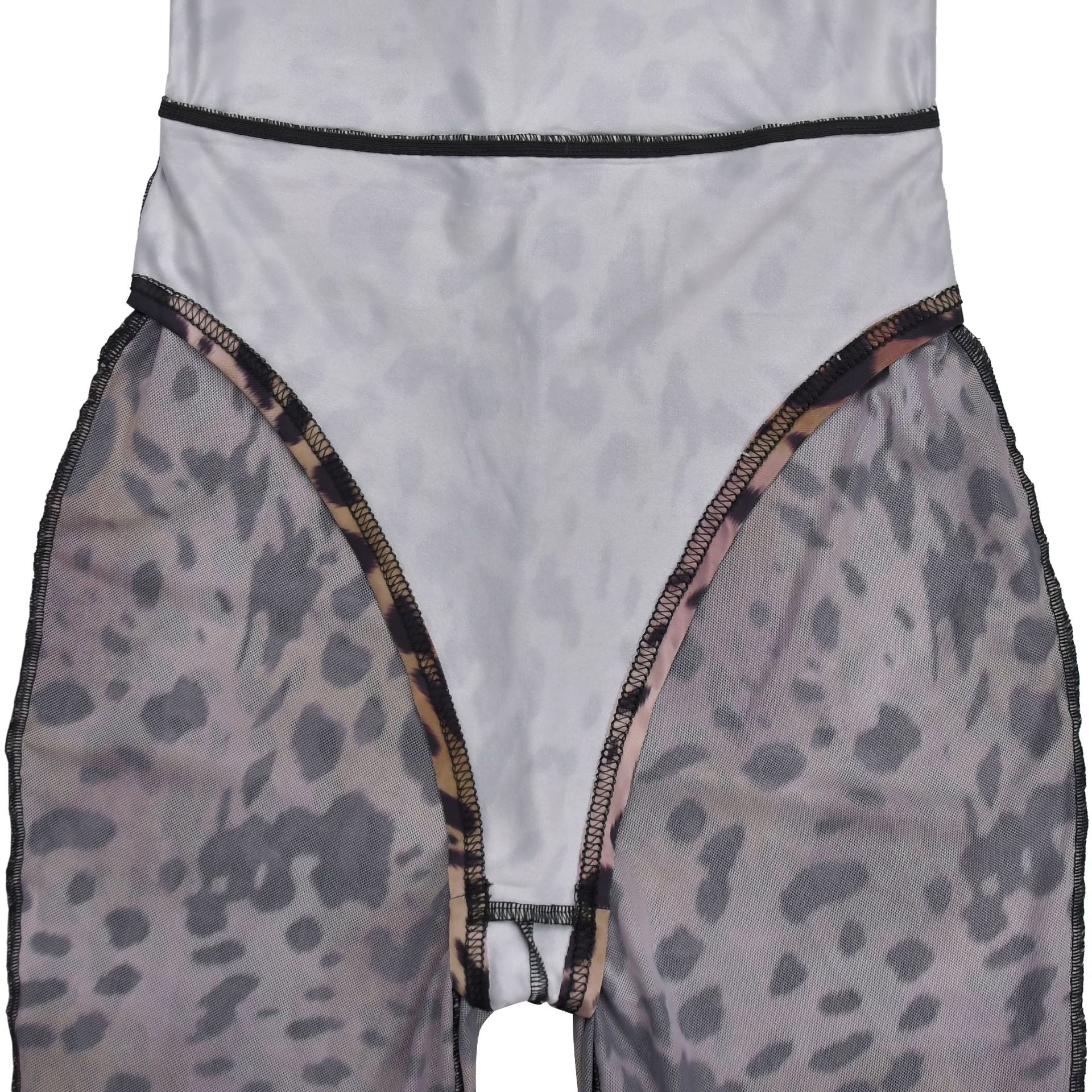 MB1607 Taupe Leopard Print Sheer Mesh Bodycon Jumpsuit