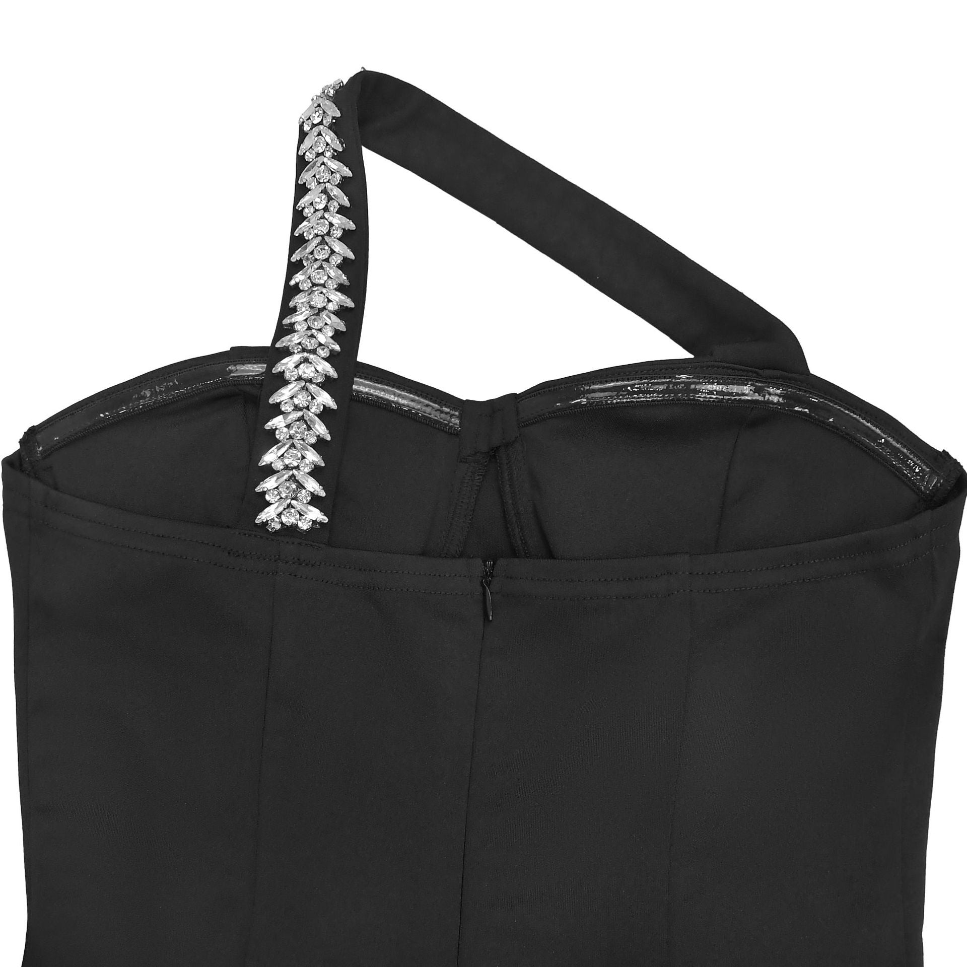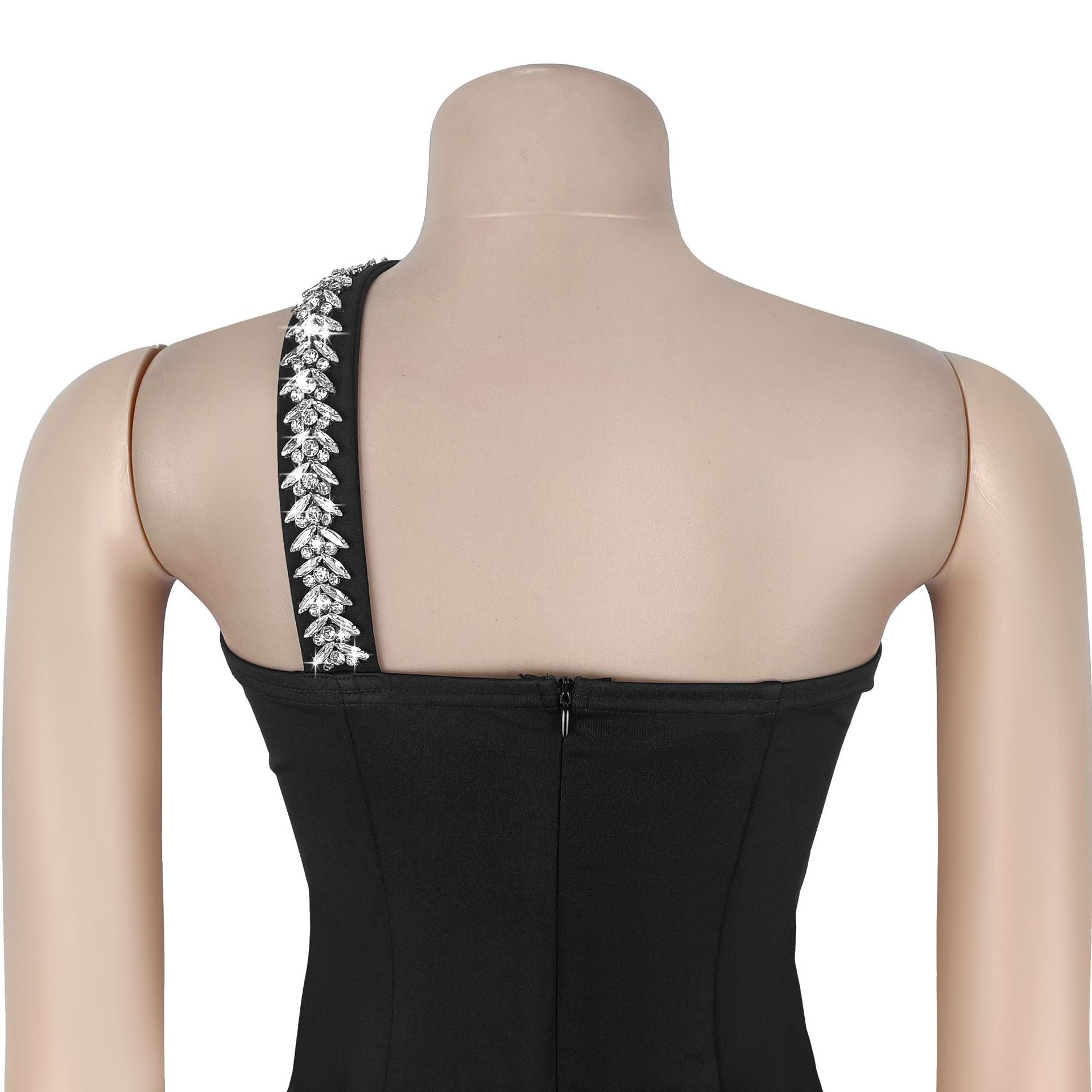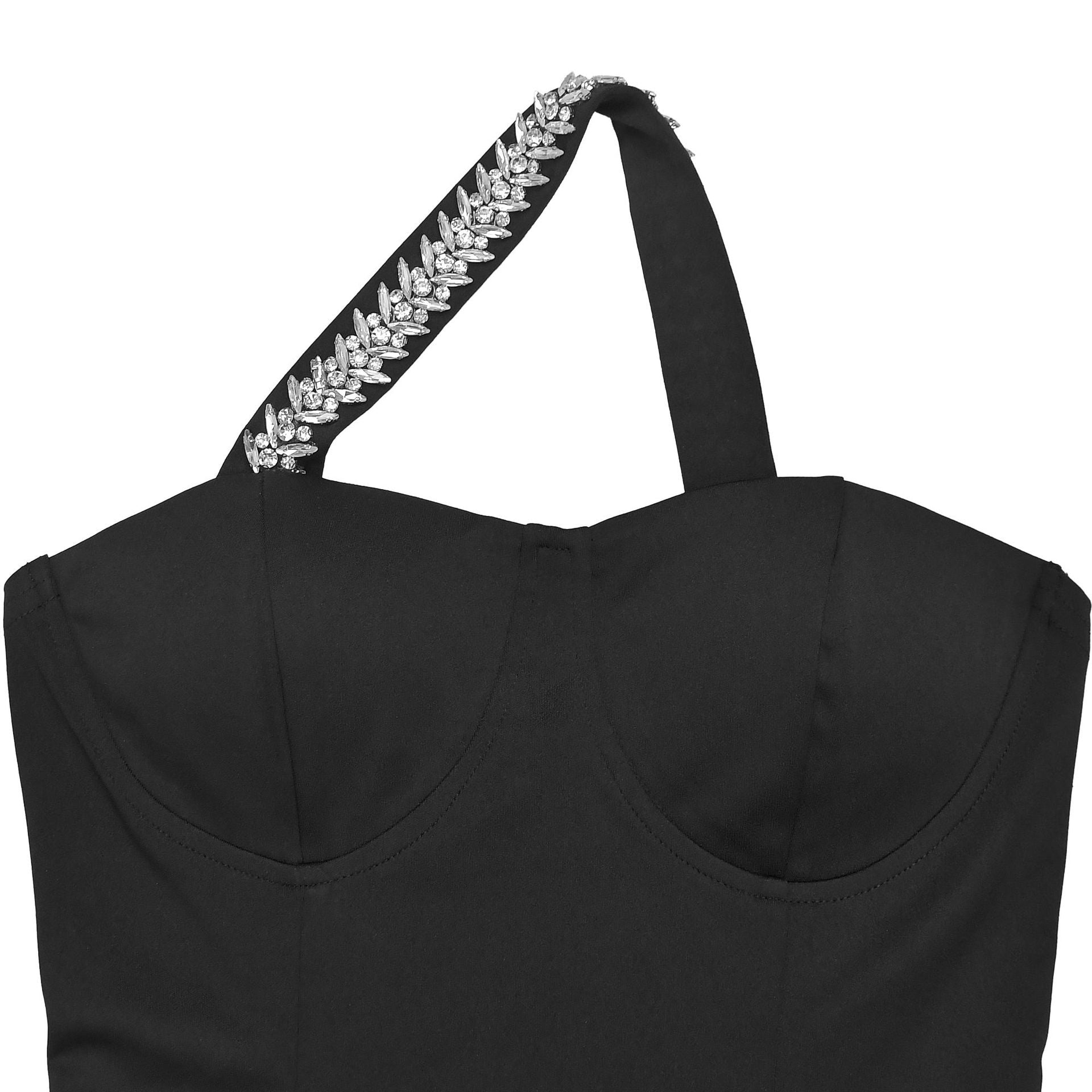 MB1611 Black One-Shoulder Rhinestone Bodycon Dress