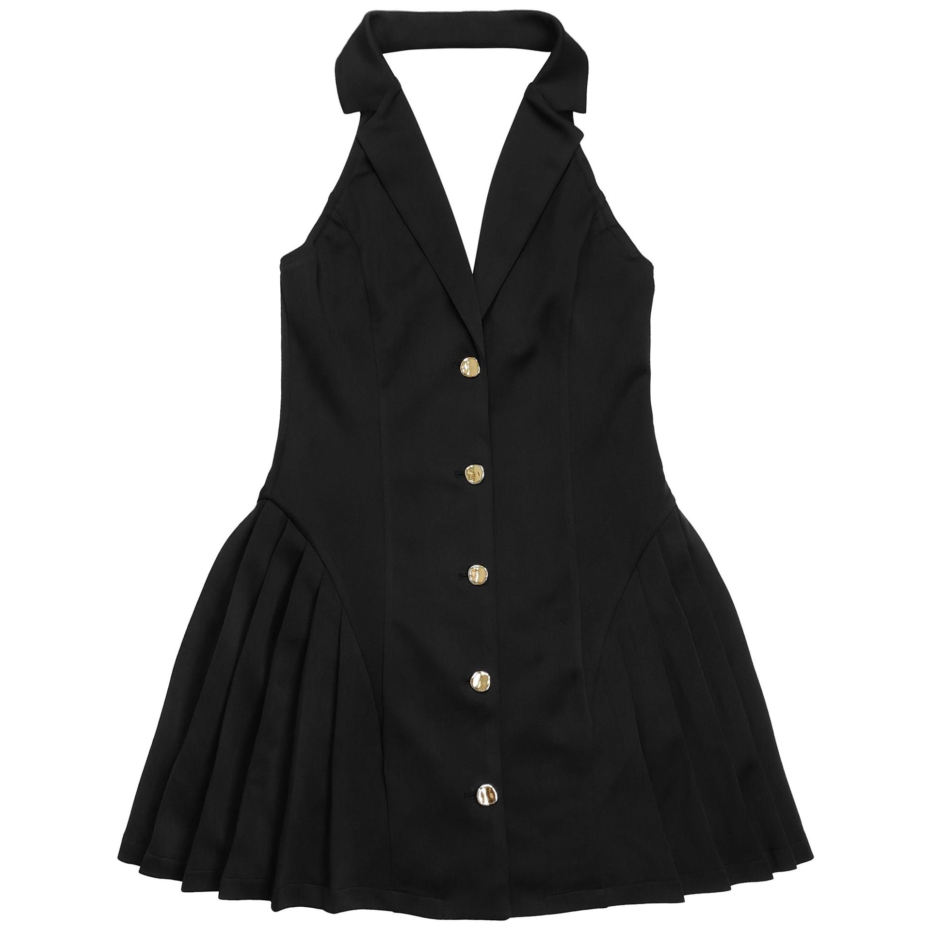 MB1615 Halter Blazer-Style Mini Dress with Gold Buttons
