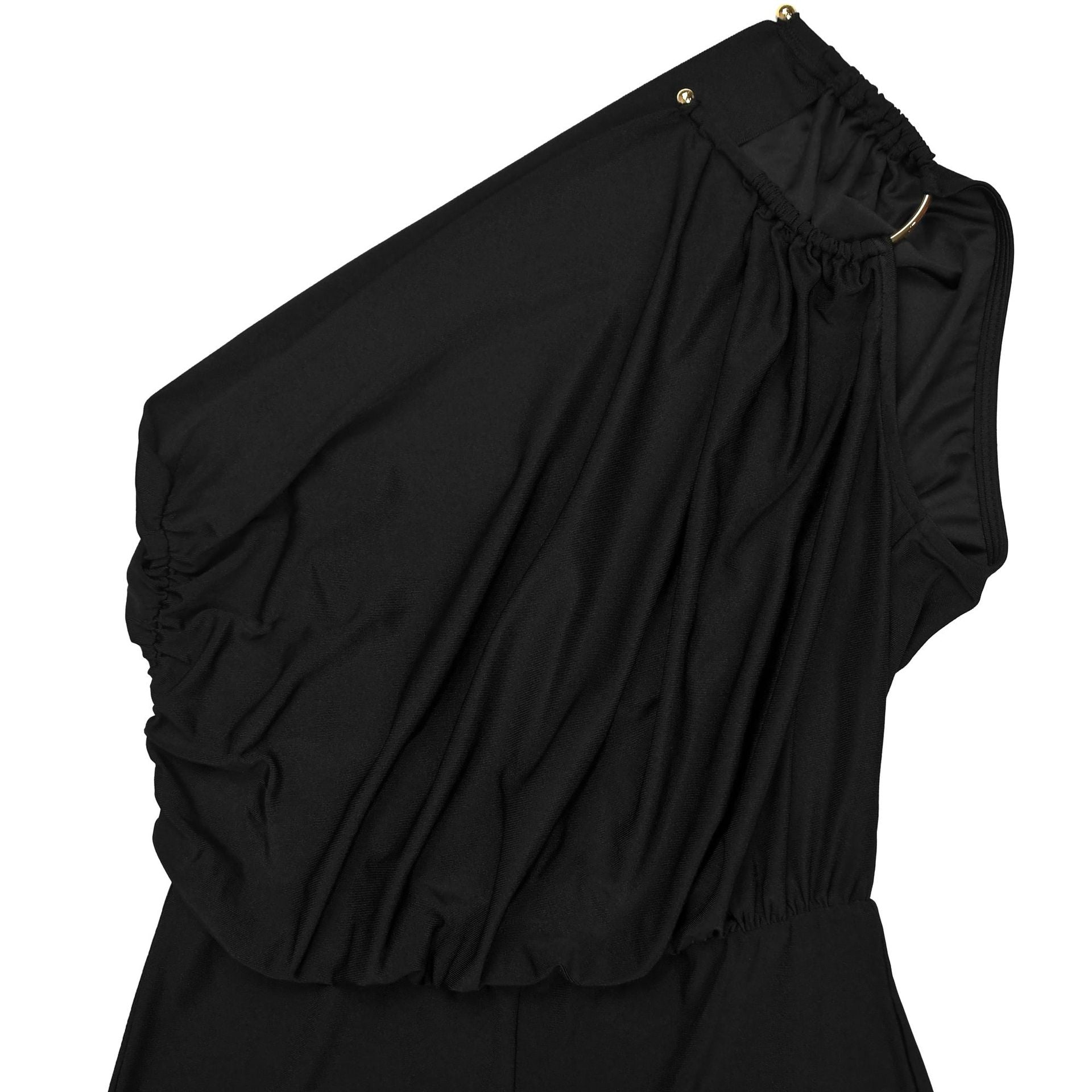 This jumpsuit is perfect for shoppers looking for a wide-leg jumpsuit for dinner dates or upscale evening outings. The one-shoulder top and flowing wide-leg pants create a sleek silhouette that fits perfectly as a versatile black jumpsuit for office-to-event transitions. It pairs smoothly with gold cuffs or strappy heels, making it a top pick for semi-formal gatherings and casual dressy moments.