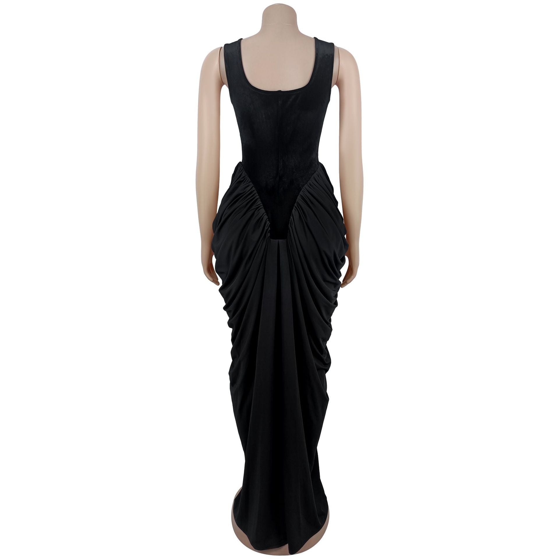 This sleek maxi dress caters to shoppers searching for a ruched maxi dress for wedding guest events upscale dinner dates. The structured square neck bodice and dramatic ruched skirt create a polished silhouette that fits perfectly for evening gatherings or special occasion outings. It pairs easily with minimalist gold accessories or a compact clutch.