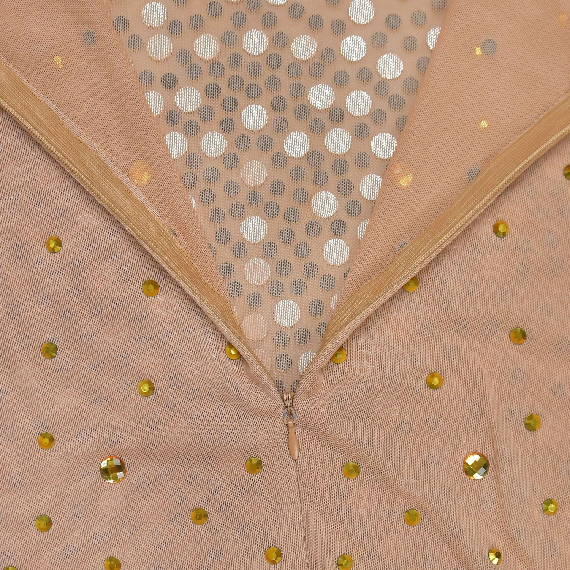 Designed with a bodycon mermaid cut, this floor length dress skims the figure before flaring slightly at the hem, offering a modern twist on classic formal gown styling. The nude-toned mesh base ensures the sparkling gold stones take center stage, making it an ideal choice for prom nights, black-tie affairs.