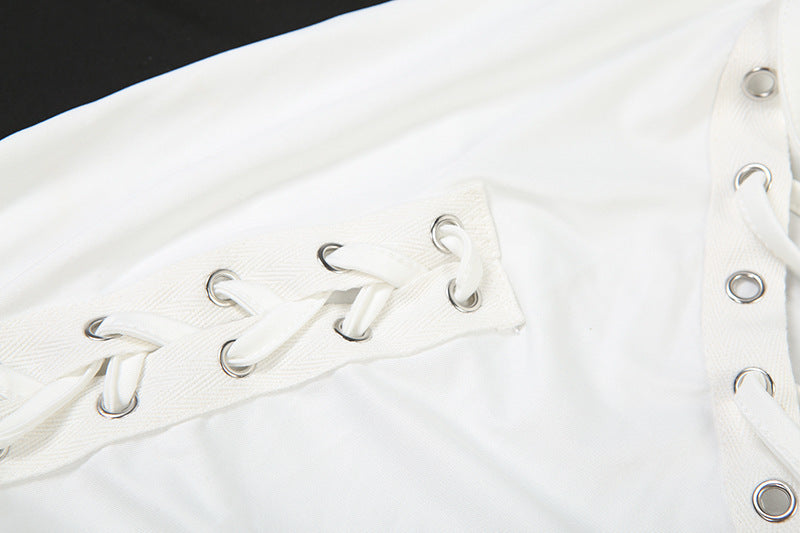 Outfit Tips: pair the full set with chunky platform combat boots and layered silver chains for bold edgy nightclub outings,throw on an oversized distressed denim jacket over the top for relaxed weekend street-style hangouts,or match the set with pointed black stiletto heels and a small leather clutch for polished intimate cocktail party looks.