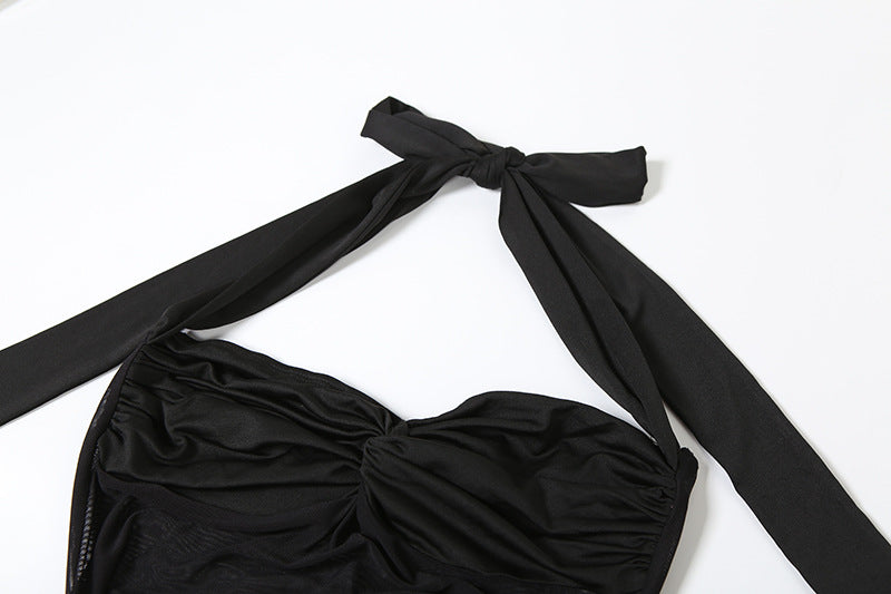 MB1816 Women's Sheer Mesh Halter Ruched Mermaid Maxi Dress